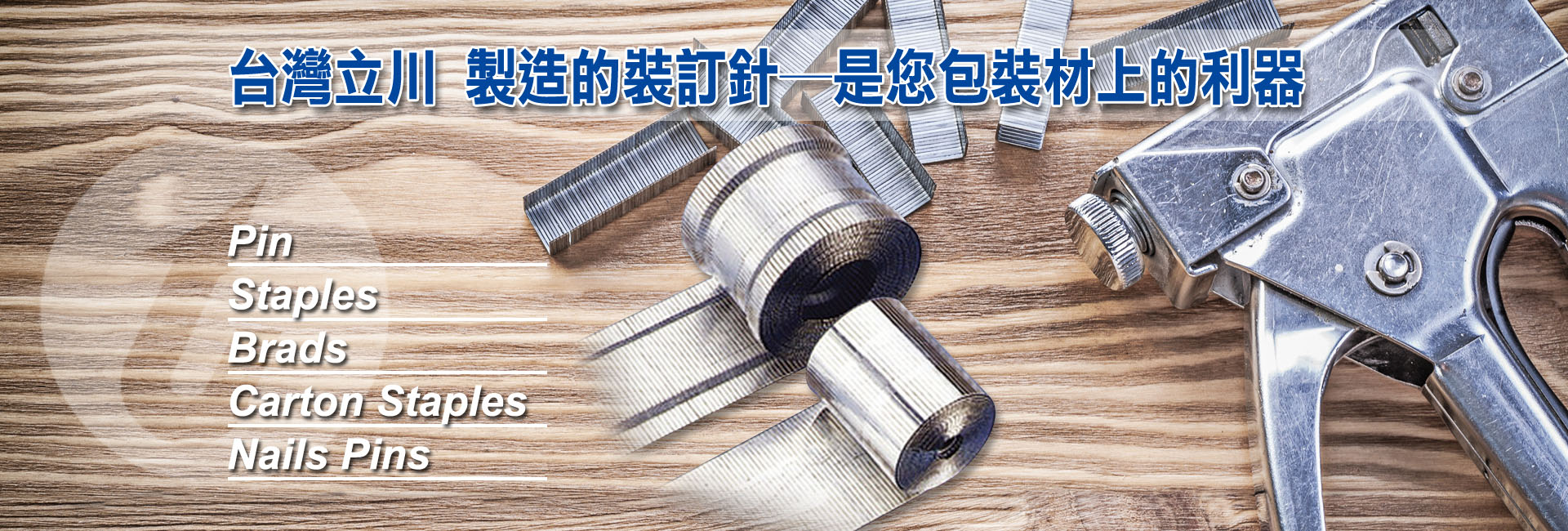 主要產品:裝訂針, 訂書針, 封口釘, 斜排釘, 封箱針, 木工針, T型針, U型針